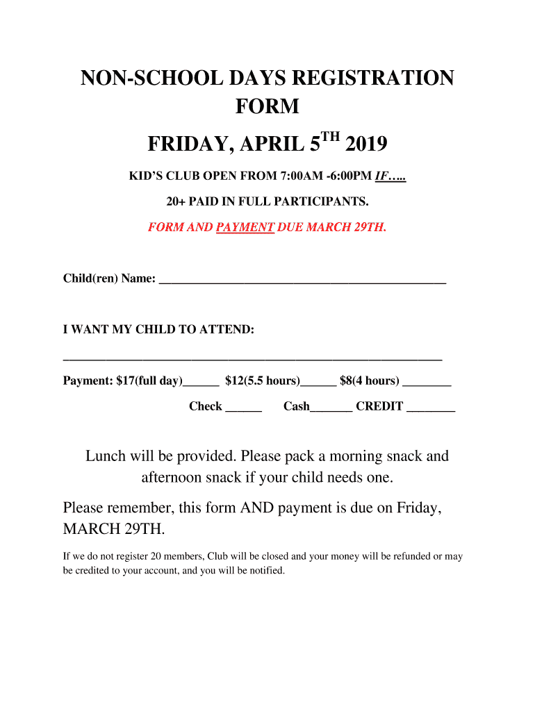 Get the free non-school days registration form friday, april 5 2019