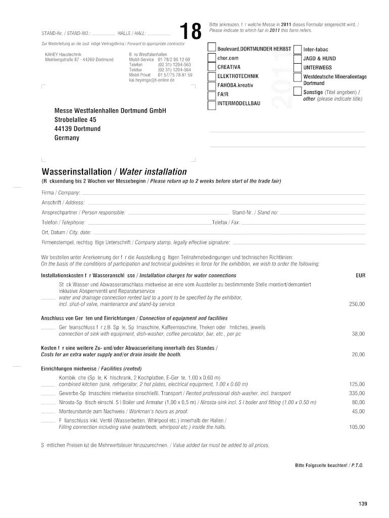 Stander. / STAND NO.: HALLE / HALL: 18 Bitter ankreuzen, for Welch Jesse in 2011 daises Formula eingereicht word. / Please indicate to which fair in 2011 this form refers. Our Weiterleitung a die