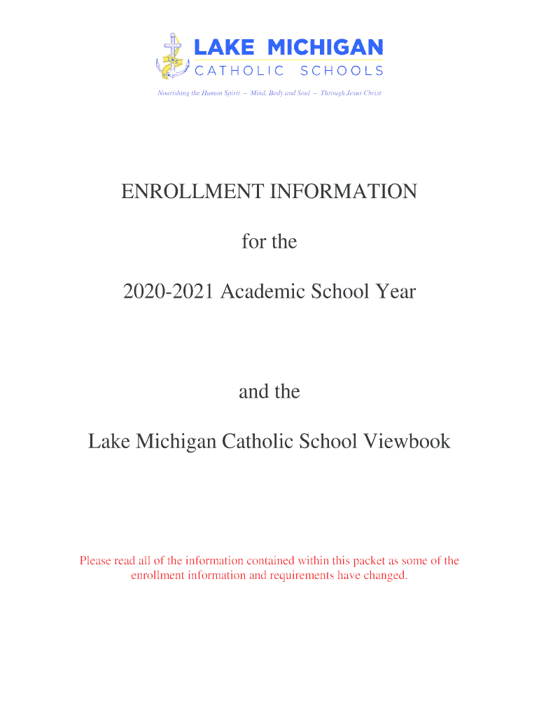 Nourishing the Human Spirit Mind, Body and Soul Through Jesus ChristENROLLMENT INFORMATION for the 20202021 Academic School Yea rand the Lake Michigan Catholic School ViewbookPlease read all the information