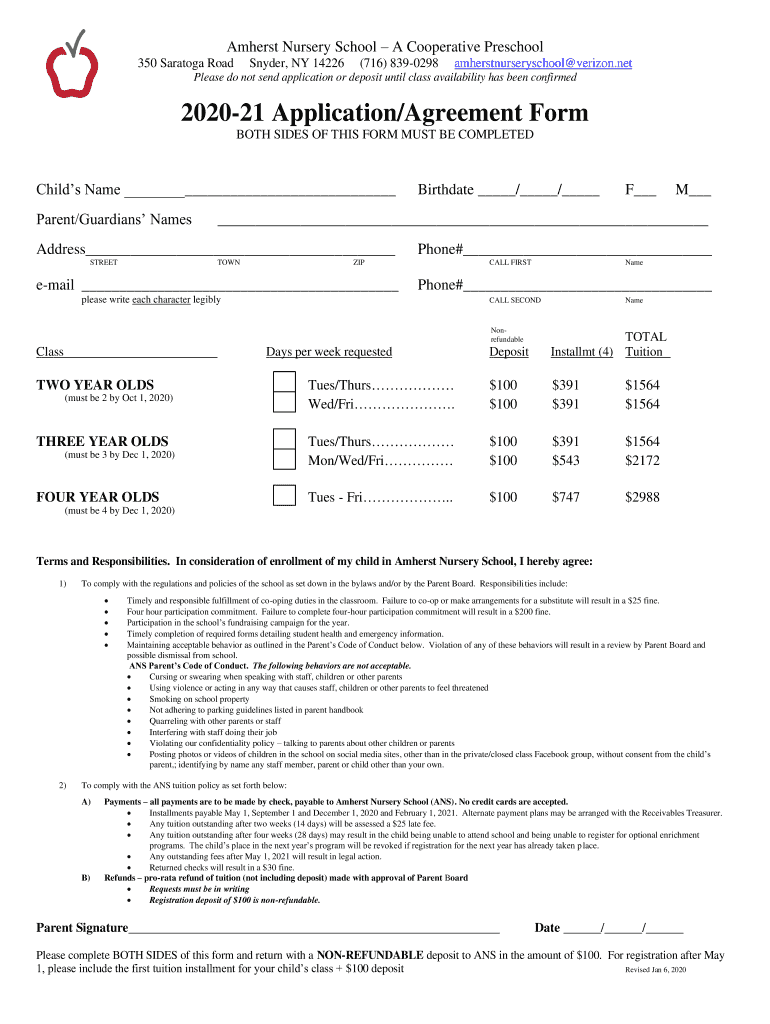 Amherst Nursery School A Cooperative Preschool 350 Saratoga Road Snyder, NY 14226(716) 8390298amherstnurseryschool Verizon. Release do not send application or deposit until class availability has