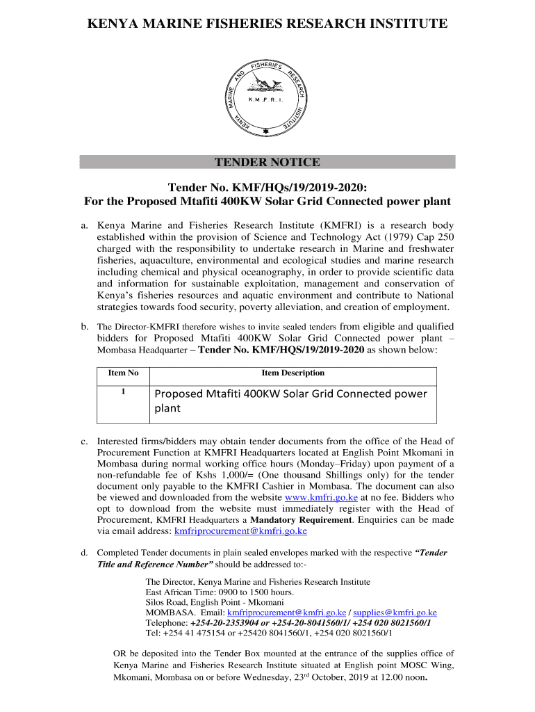 Get the free KENYA MARINE FISHERIES RESEARCH INSTITUTE