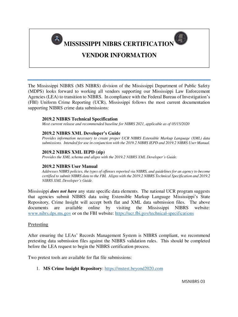 VENDOR Information Mississippi NIBS (MS NIBS) division of the Mississippi Department of Public Safety