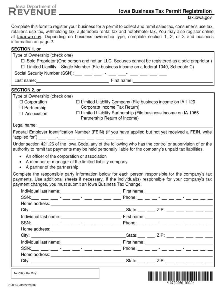 Iowa Business Tax Permit Registration tax.Iowa.gov Complete this form to register your business for a permit to collect and remit sales tax, consumers use tax, retailers use tax, withholding tax,