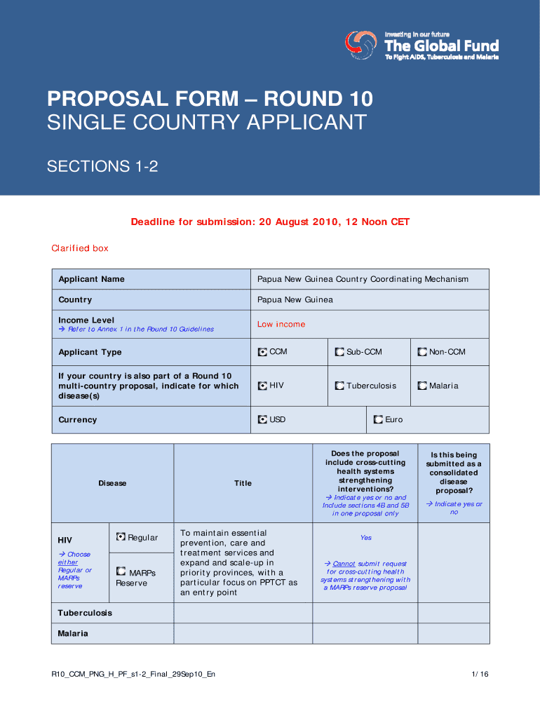 Get the free proposal form round 10 single country applicant - The ...