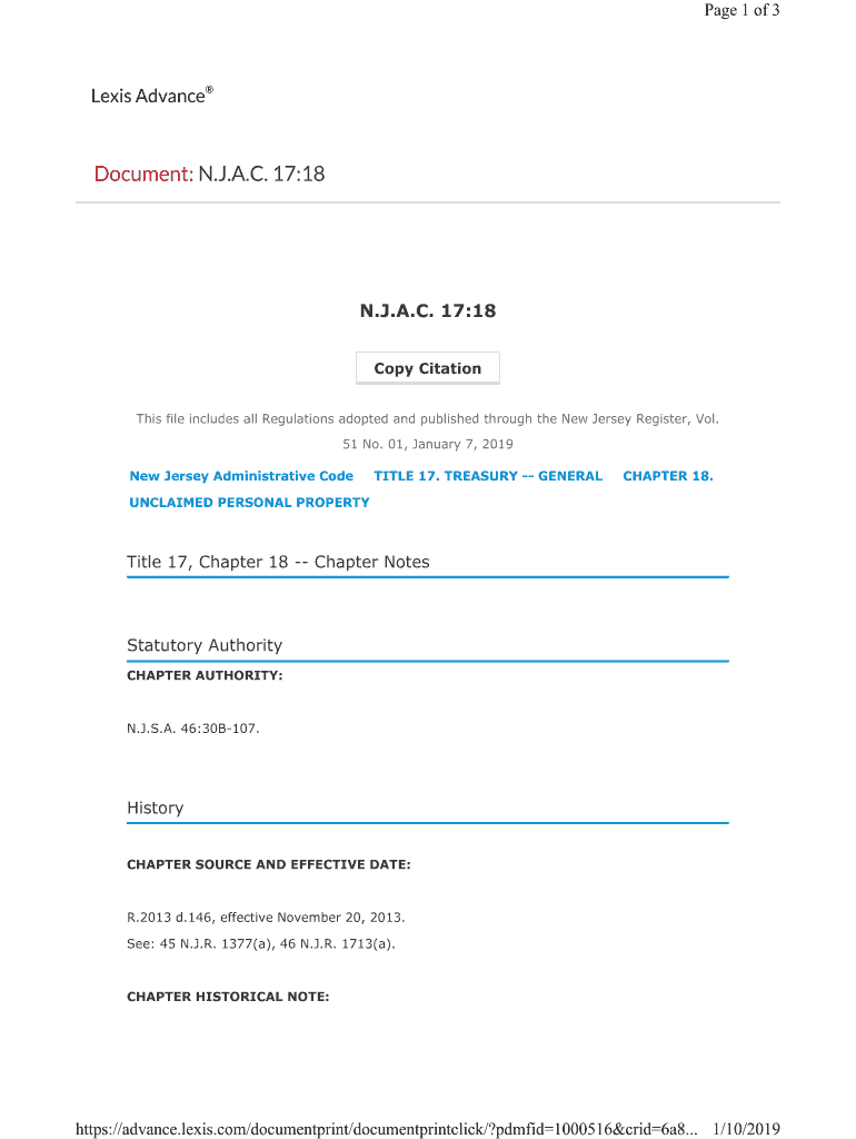 Page 1 of 3Lexis AdvanceDocument: N.J.A.C. 17:18 N. J.A.C. 17:18 Copy Citation This file includes all Regulations adopted and published through the New Jersey Register, Vol. 51 No. 01, January 7,