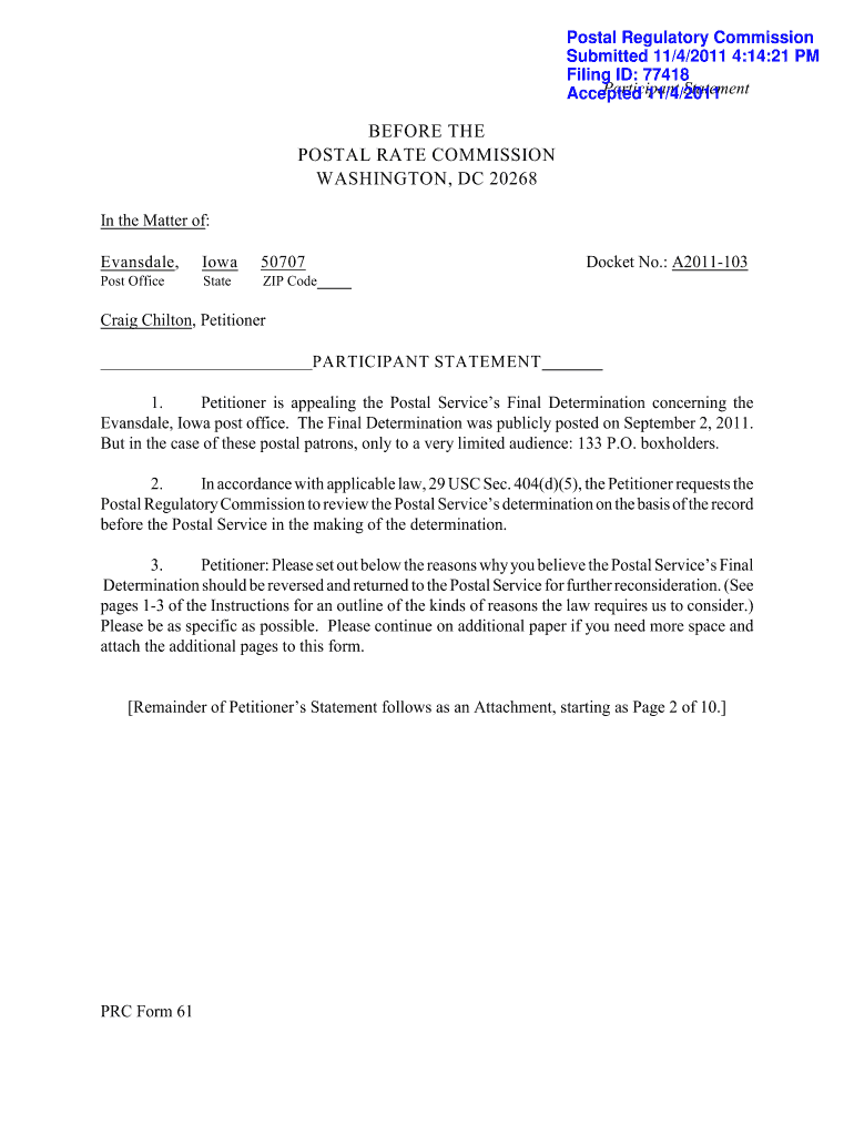 Get the free before the postal rate commission washington, dc 20268