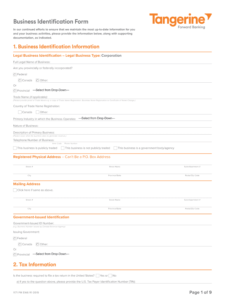 Business Identification Form In our continued efforts to ensure that we maintain the most update information for you and your business activities, please provide the information below, along with
