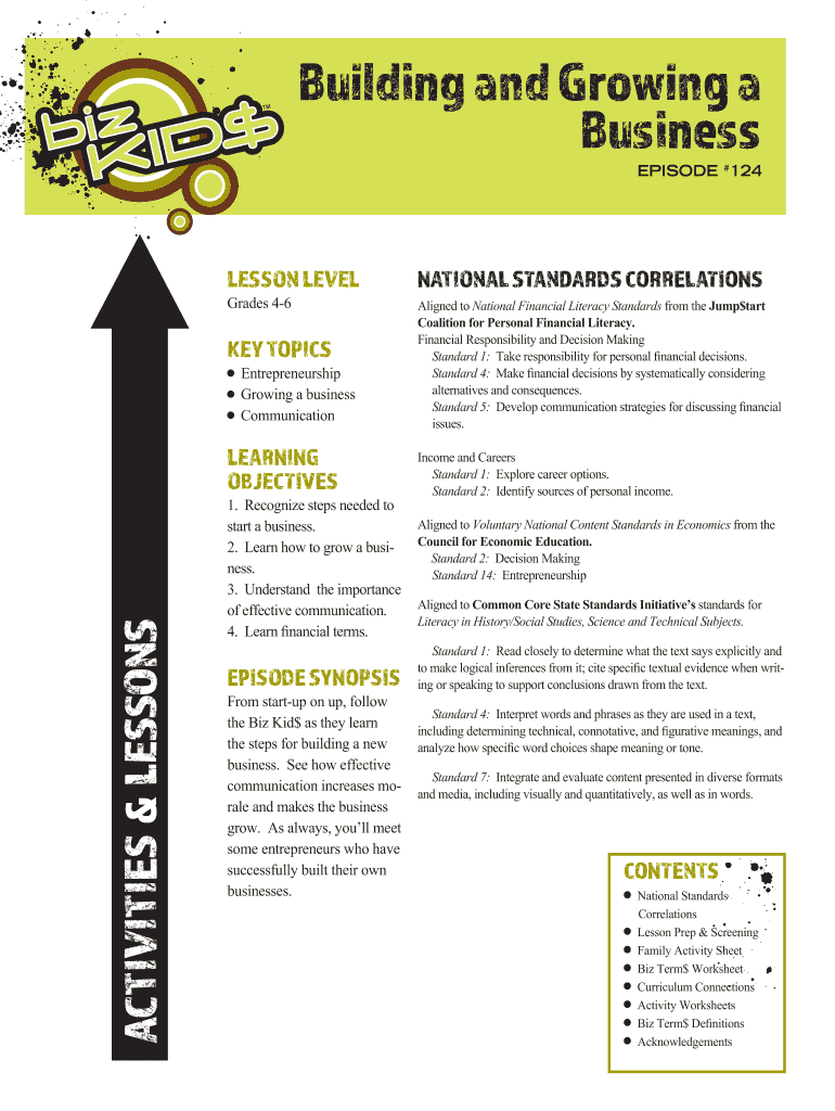 EPISODE #124LESSON LEVELNATIONAL STANDARDS CORRELATIONSGrades 46Aligned to National Financial Literacy Standards from the Jump start