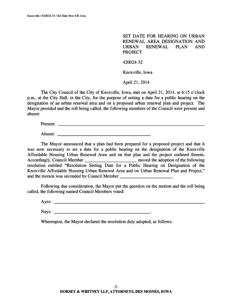 Knoxville / 42002432 / Set Date New UR Area SET DATE FOR HEARING ON URBAN