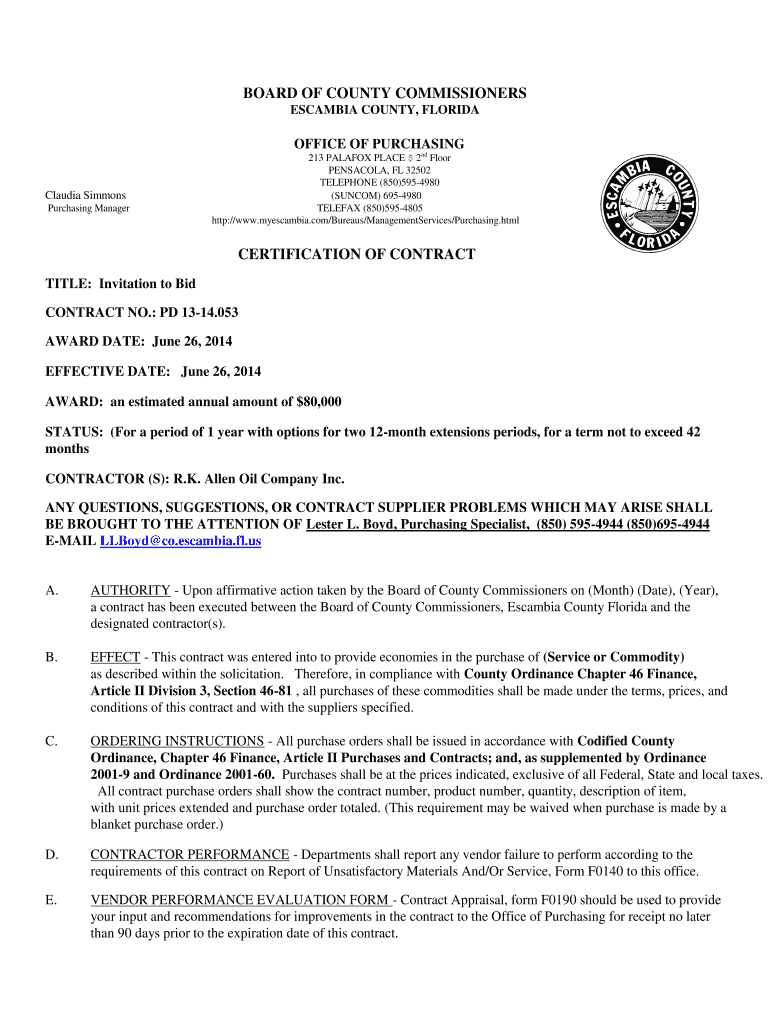 Get the free 11. letter to company with executed agreement - MyEscambia ...