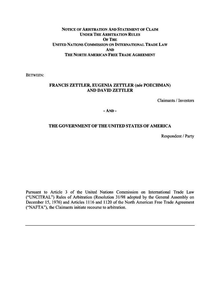 Get the free Notice of Arbitration - NAFTA claims