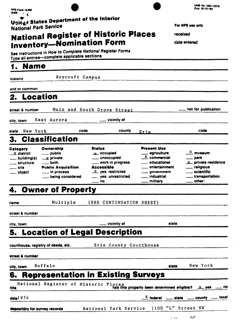 0 MB No. 10240018 Exp. 1O3184NPS Form 10900 042). States Department of the Interior For NFS KM onlyNational Park ServiceNational Register of Historic Places InventoryNomination Form received date