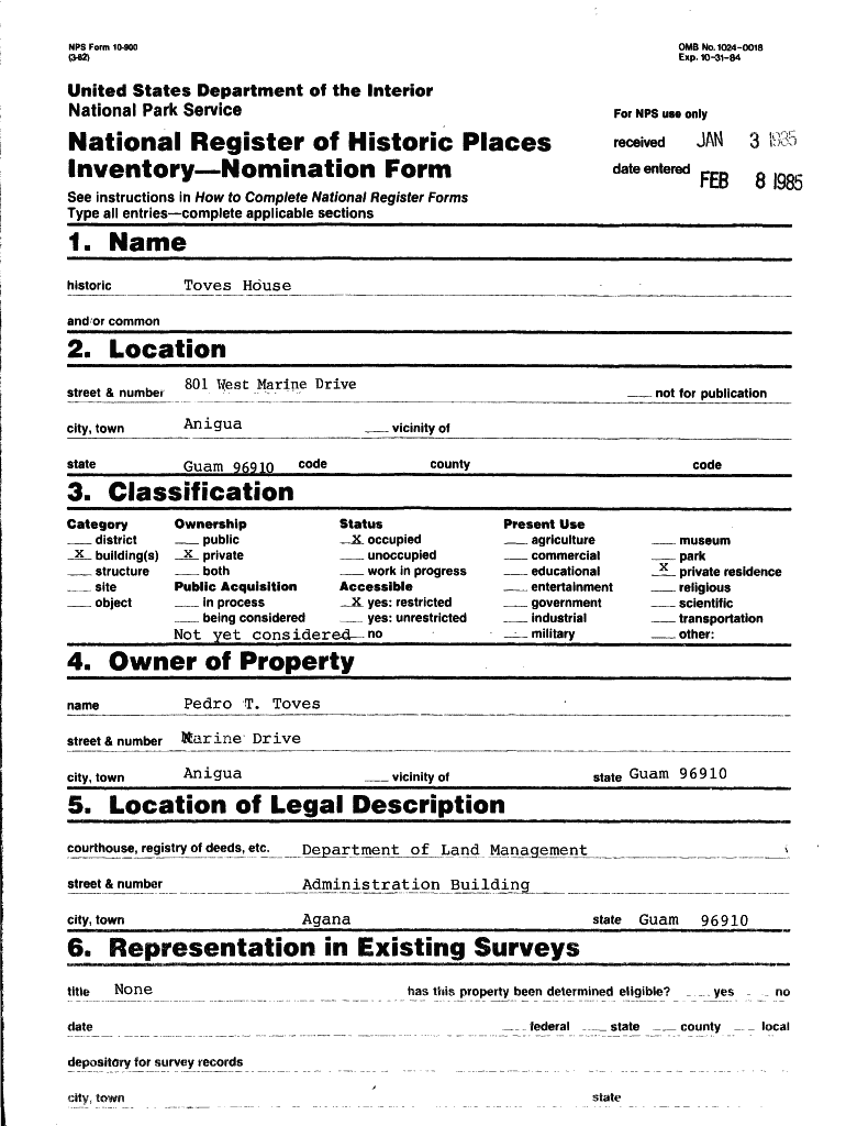 NPS Form 10900 (382)OMB No. 10240018 Exp.103184United States Department of the International Park ServiceNow NPS use onlyNational Register of Historic PlacesreceivedInventoryNomination FormJAN3 1935,.,