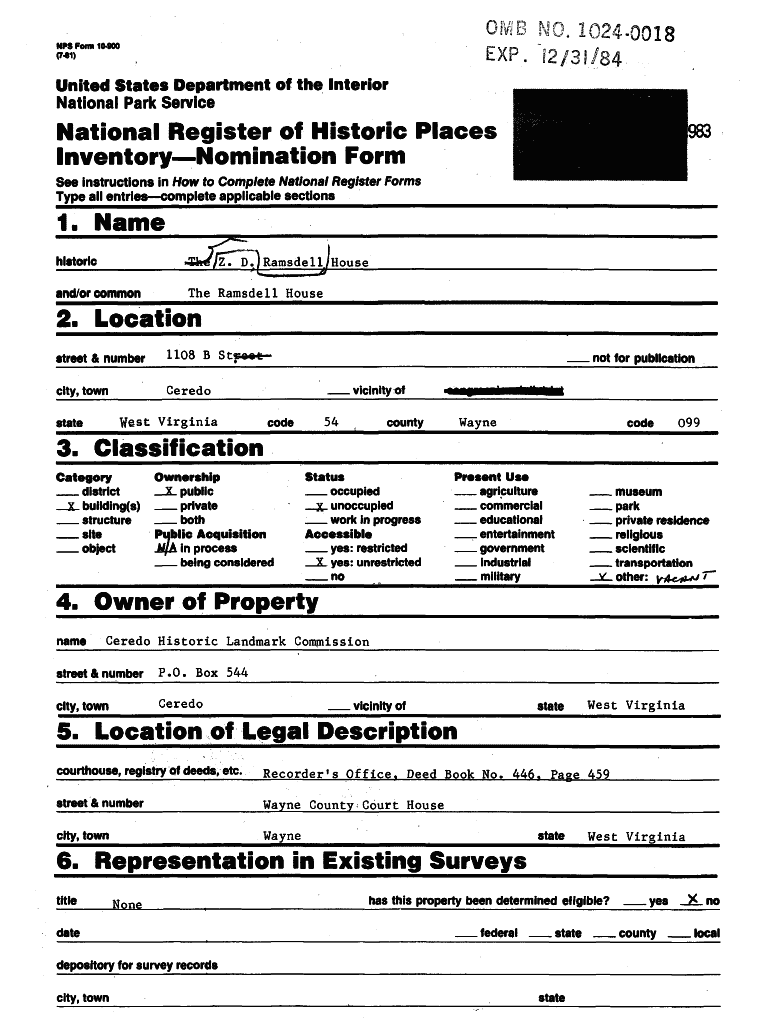 National Register Nomination Form is not the form you're looking for?Search for another form here.