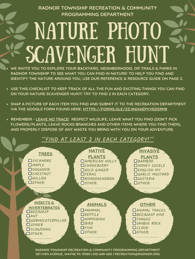 Get the free Nature Photo Scavenger Hunt - Radnor Township Recreation ...
