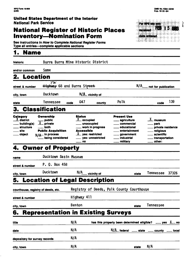 NPS Form 10900 (382)OMB No. 1024OO18 Exp.103184United States Department off the International Park ServiceNational Register of Historic Places InventoryNomination Form See instructions in How to Complete