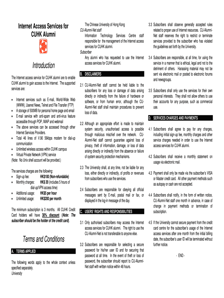 Get the free CUHK Alumni Internet Access Subscription Form