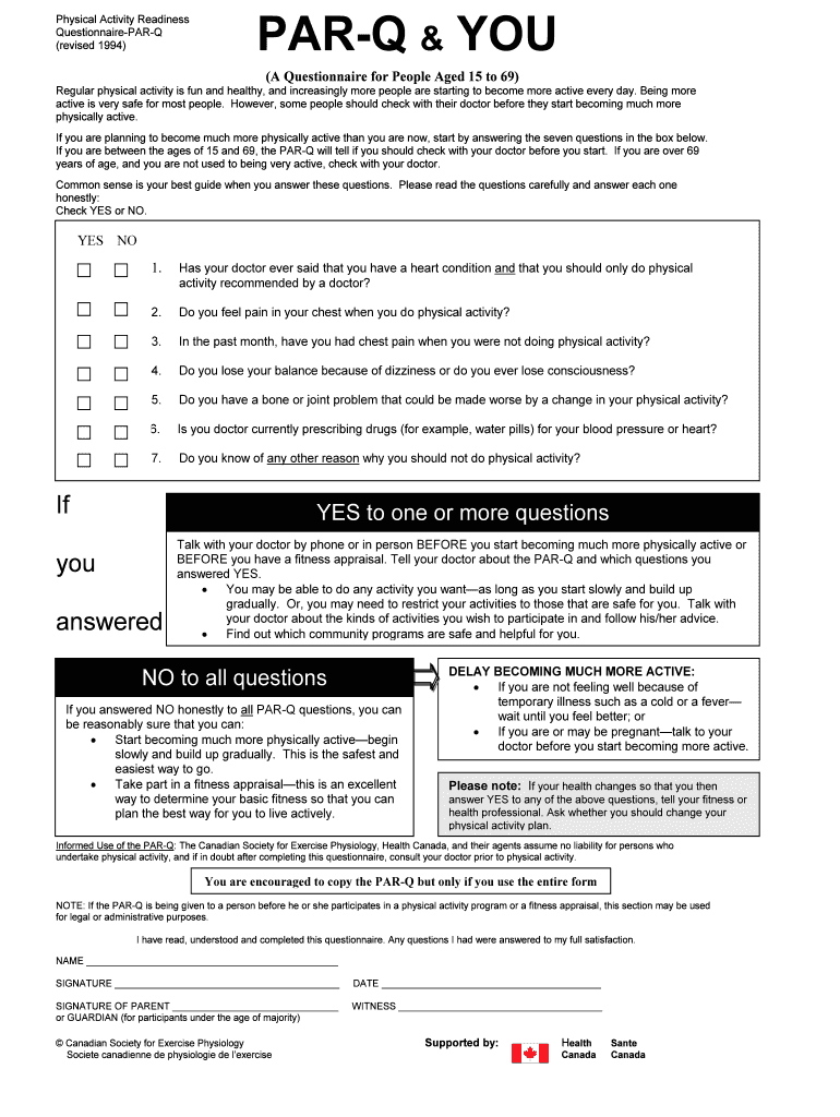 Get the free Physical Activity Readiness Questionnaire (PAR-Q)