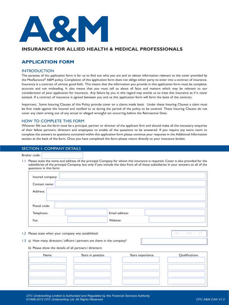 INSURANCE FOR ALLIED HEALTH & MEDICAL PROFESSIONALSMedSurance A&M Application Former Affiliated Brokers Exchange Inc. 139 Northfield Dr. W., Suite 206 Waterloo, ON N2L 5A6 (p) 5198800044 (f) 8558217060
