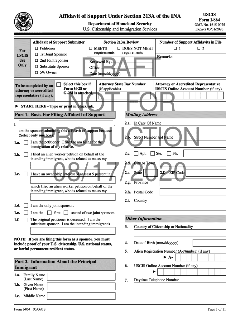 Any U.S. citizen or permanent resident who is sponsoring an immigrant must file Form I-864 to prove they can financially support the immigrant.