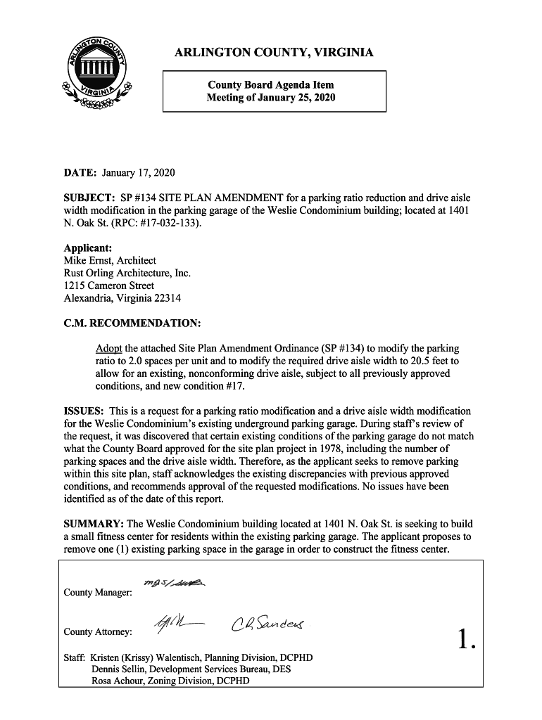 SUBJECT: SP #134 SITE PLAN AMENDMENT for a parking ratio reduction and drive aisle