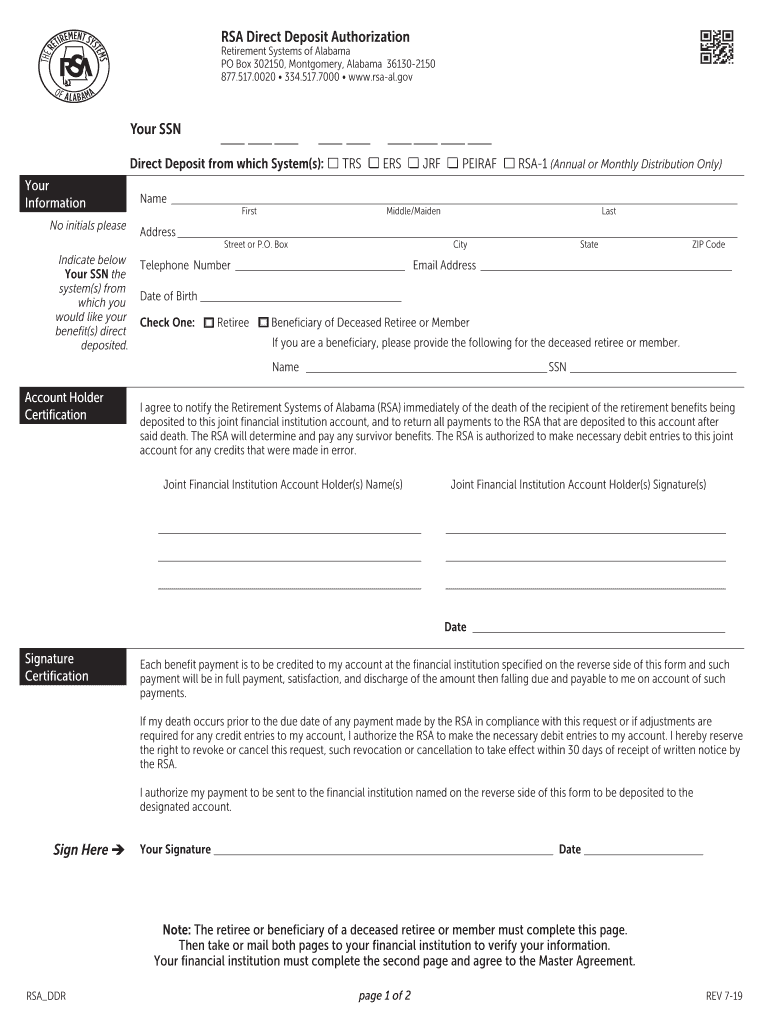 RSA1 Deferred Compensation Plan P.O. Box 302150 Montgomery, Alabama 361302150 334.517.7000 or 8775170020 www.rsaal.govRSA1/PEIRAF Participant Distribution Packet Periodic Payments Request for Periodic
