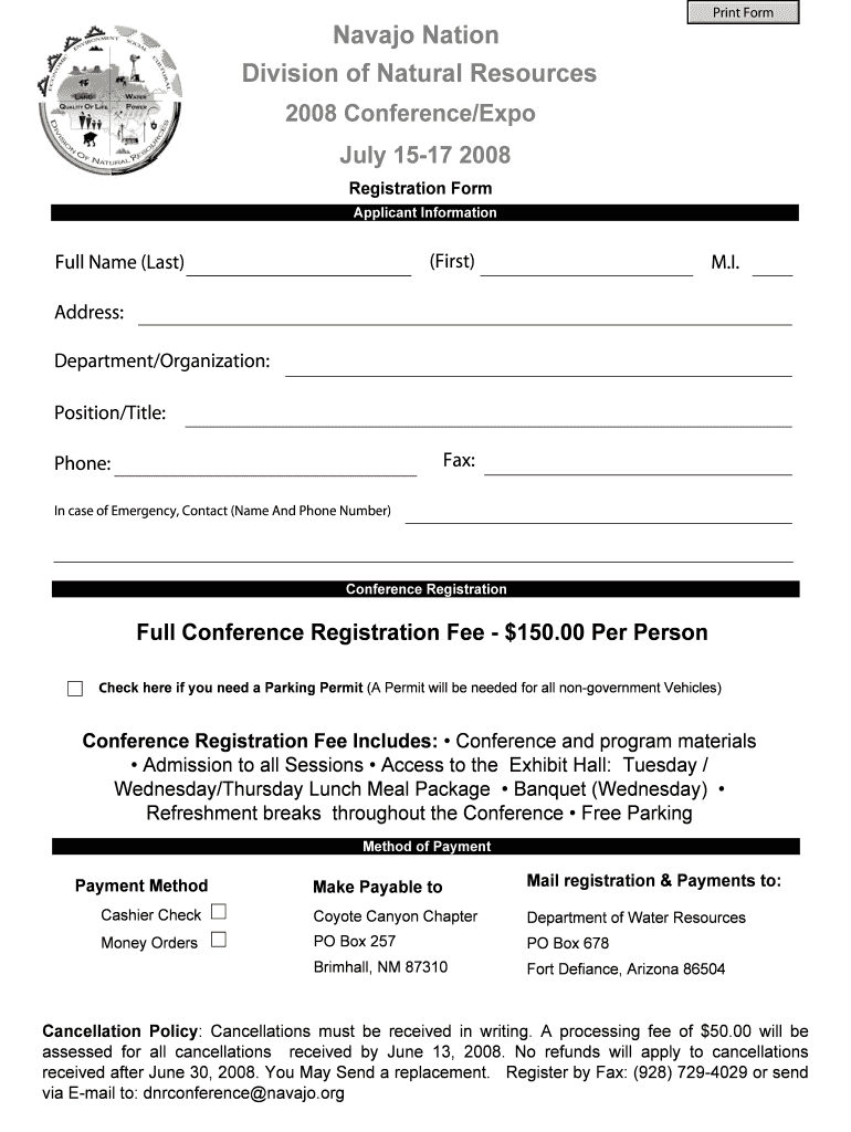 Navajo Nation Division of Natural Resources Print Form 2008 Conference/Expo July 1517 2008 Registration Form Applicant Information (First) Full Name (Last) M.I. Address: Department/Organization: Position/Title:
