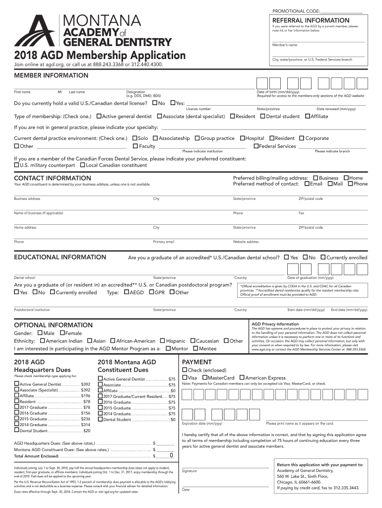 PROMOTIONAL CODE: REFERRAL INFORMATION If you were referred to the AGD by a current member, please note his or her information below:Members name2018 AGD Membership ApplicationCity, state/province,