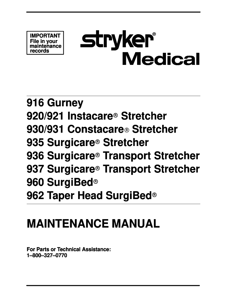 IMPORTANT File in your maintenance records916 Gurney 920/921 Instacart Stretcher 930/931 ConstacareR Stretcher 935 Surgical Stretcher 936 Surgical Transport Stretcher 937 Surgical Transport Stretcher