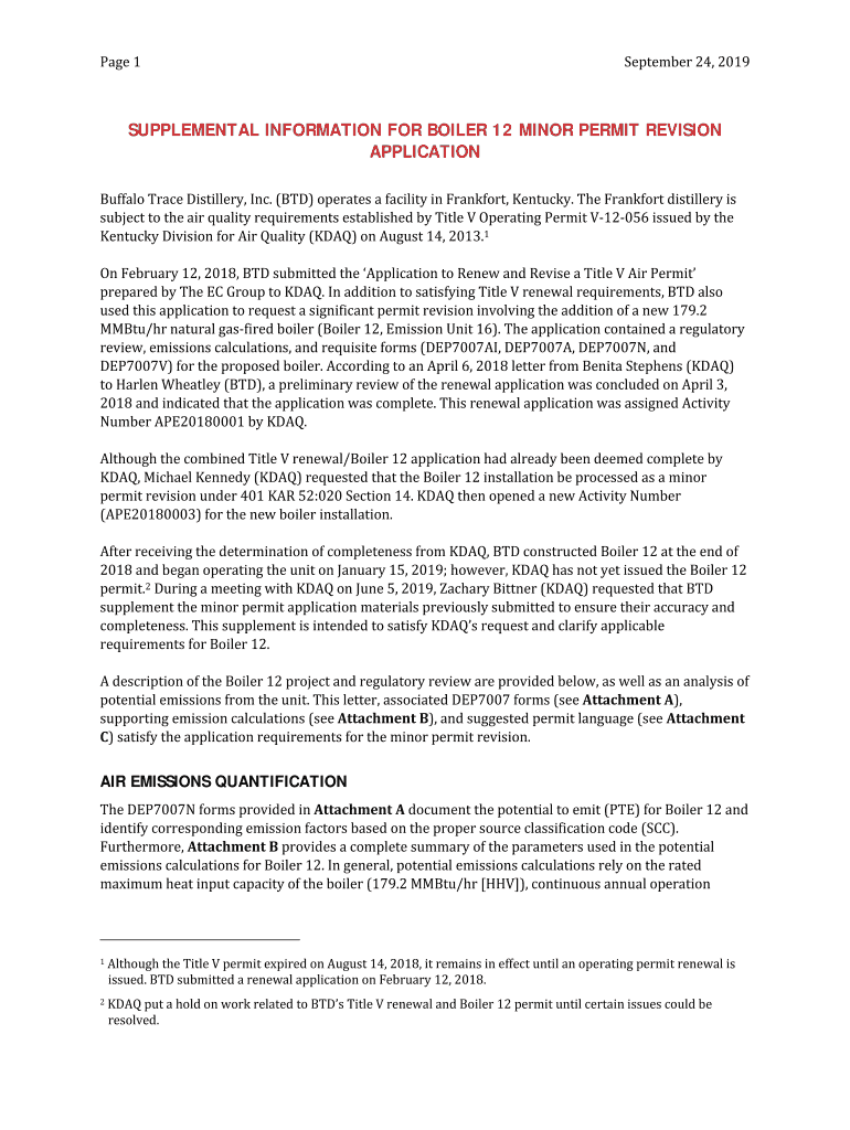 Page 1September 24, 2019SUPPLEMENTAL INFORMATION FOR BOILER 12 MINOR PERMIT REVISION