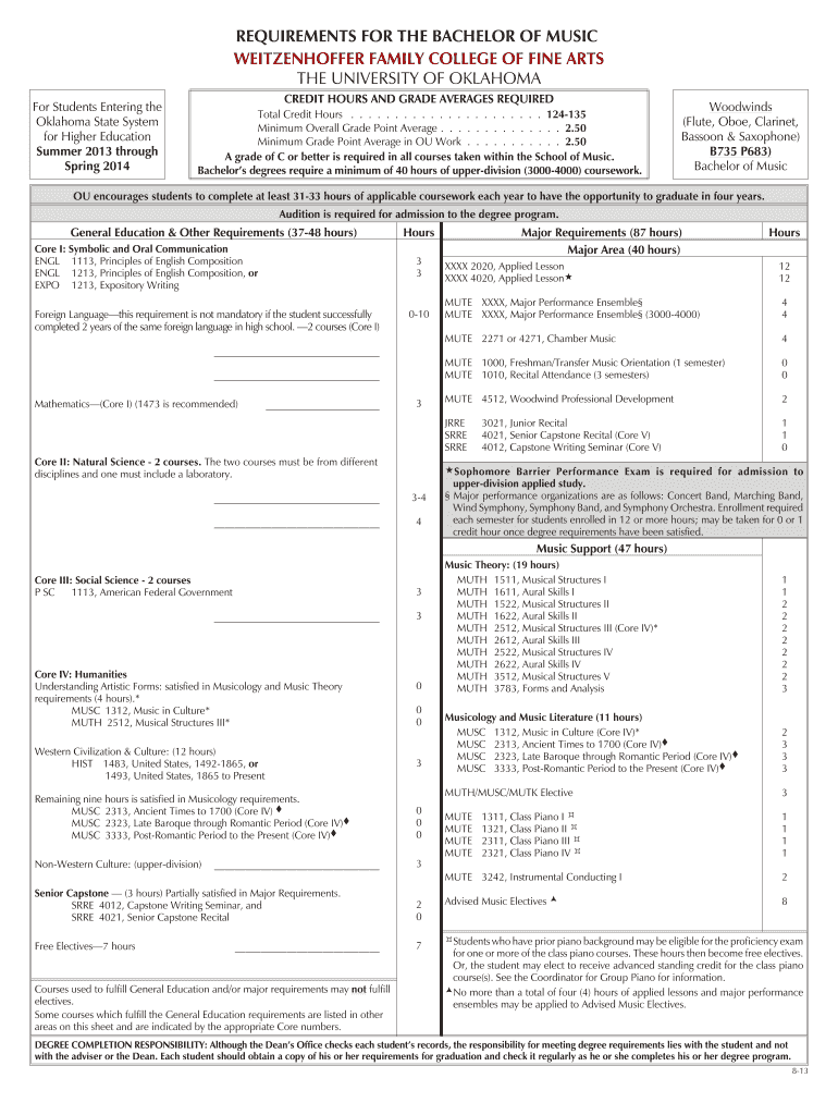 REQUIREMENTS FOR THE BACHELOR OF MUSIC