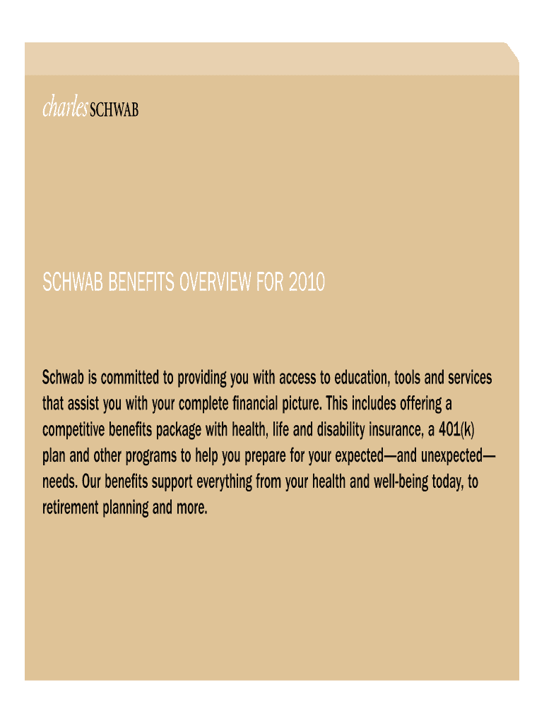 Get the free SCHWAB BENEFITS OvERvIEW FOR 2010
