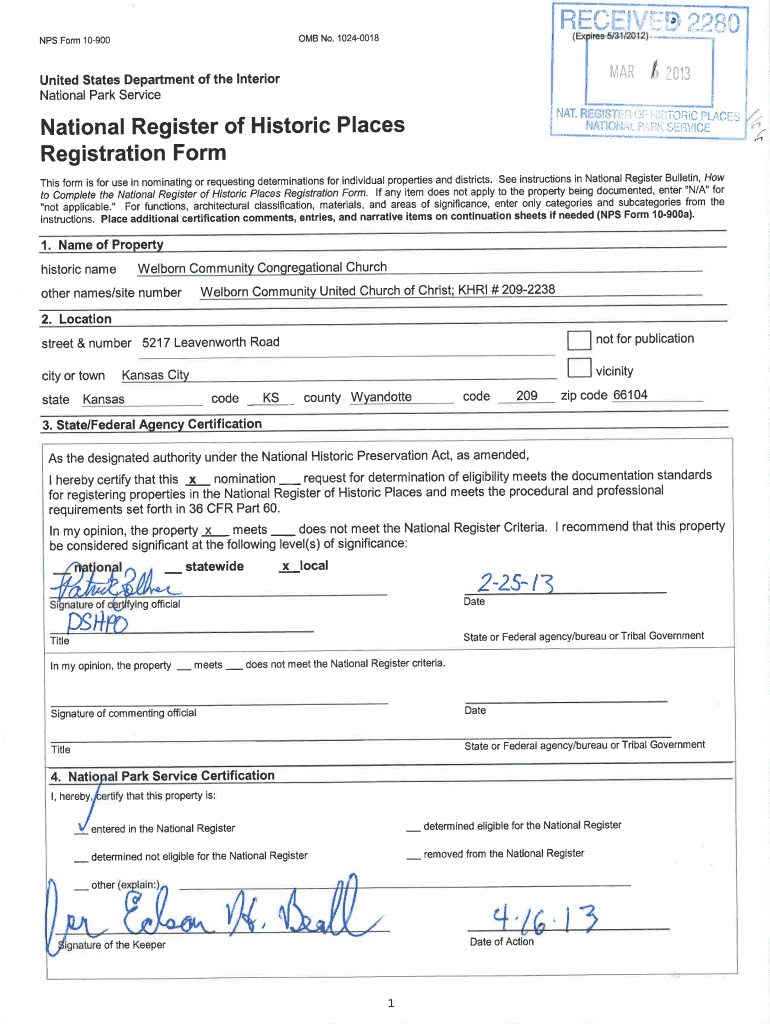 OMB No. 10240018NPS Form 10900United States Department of the Interior National Park ServiceNational Register of Historic Places Registration Form How This form is for use in nominating or requesting