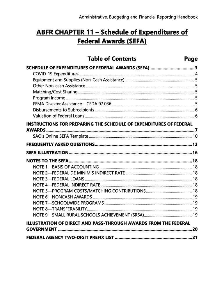 Administrative, Budgeting and Financial Reporting HandbookABFR CHAPTER 11 Schedule of Expenditures of Federal Awards (SEA) Table of ContentsPageSCHEDULE OF EXPENDITURES OF FEDERAL AWARDS (SEA) .....................................