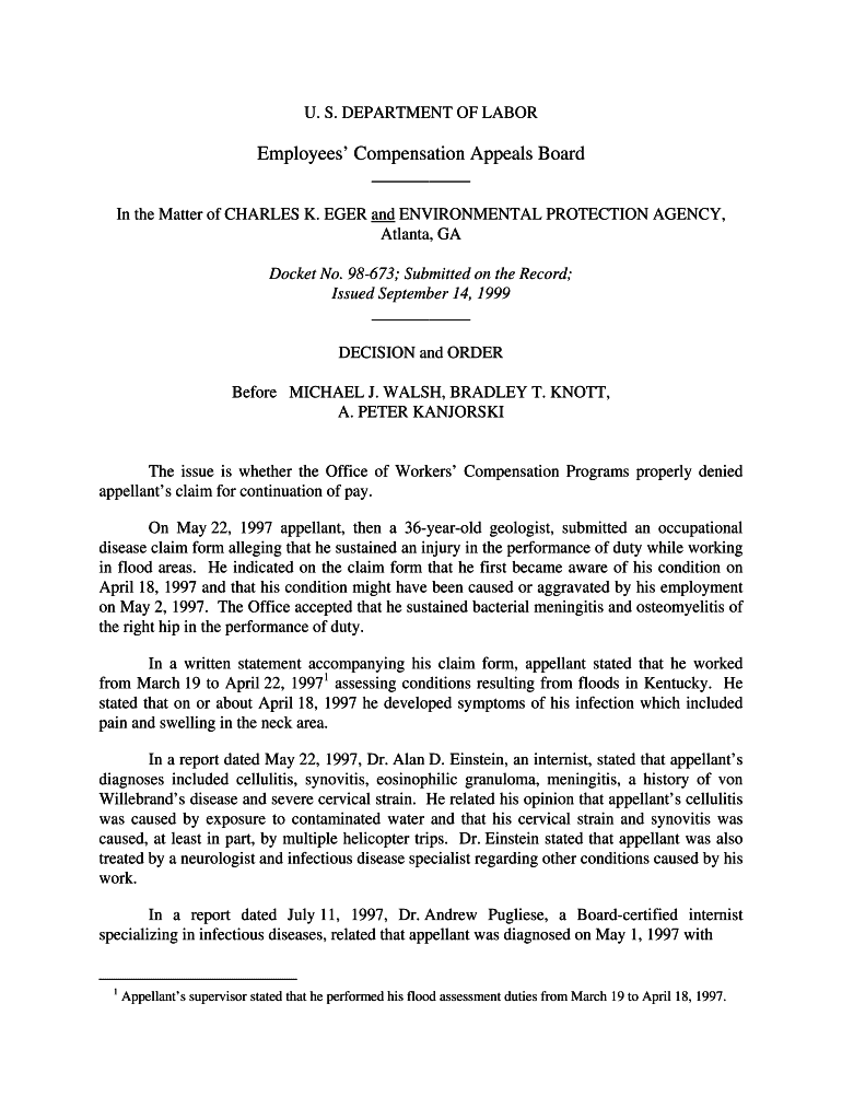 Get the free 98-0673: CHARLES K. EGER and ENVIRONMENTAL PROTEC...