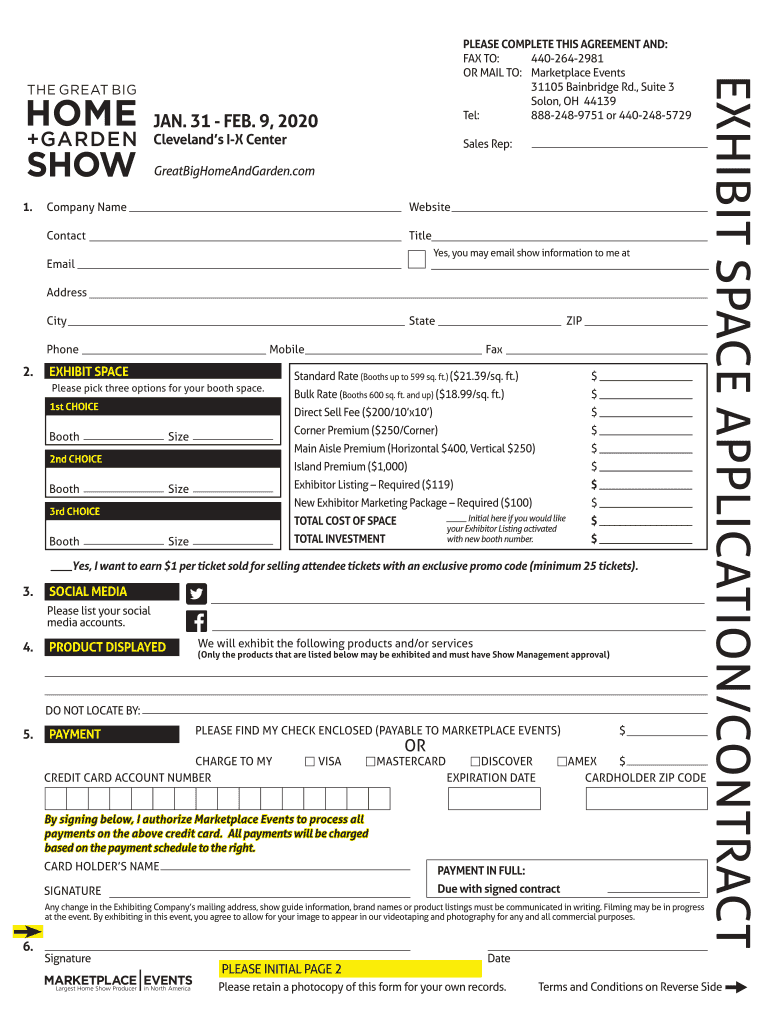 JAN. 31 FEB. 9, 2020 Cleveland's IX Center Sales Rep:GreatBigHomeAndGarden.com 1. Company NameContactEmailAddressWebsiteTitleYes, you may email show information to me at CityPhonePlease pick three