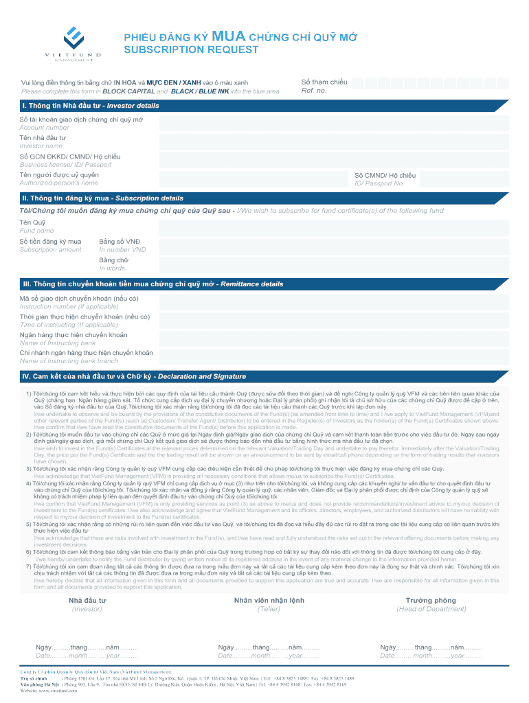PHI U NG K MUD CH NG CH EU M SUBSCRIPTION REQUEST GUI l NG i nth NG tin b NG ch IN HOA v M C EN / ANH v o m u ANH Please complete this form in BLOCK CAPITAL and BLACK / BLUE INK into the blue area