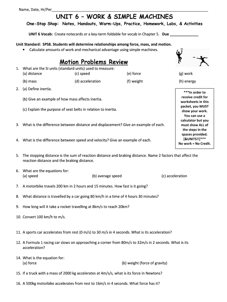 Get Started with the Physics Worksheet Unit 6 Work and Simple Machines Today