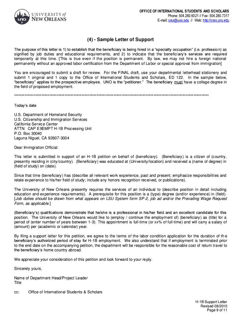 Foreign nationals applying for H-1B visas also need this letter to demonstrate their qualification for specialized roles, effectively establishing their eligibility for the job in question. Situations where this support letter is applicable include initial visa applications and extensions.