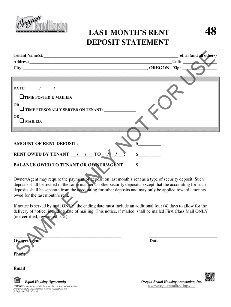 Get the free Oregon Last Month's Rent Deposit Statement