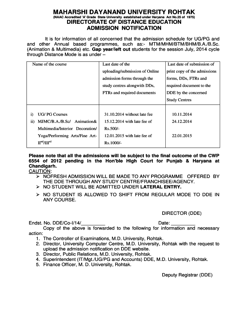 Fill out your maharshi dayanand university mdu online with pdfFiller!