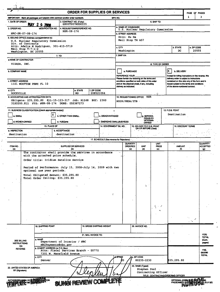Get the free Delivery Order No. NRC-DR-07-08-174.