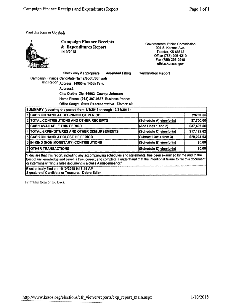 Get the free Campaign Finance Candidate Name:Scott Schwab - ethics ks