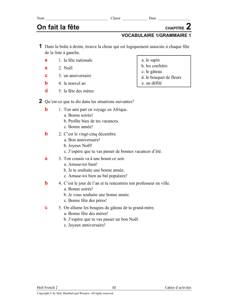 Not Class Date On wait la fteCHAPITRE2VOCABULAIRE 1/GRAMMAR 11 Dans la both wrote, troupe la chose quit est logiquement associate claque FTE de la list gauche.e1. La FTE nationalea2. Nolc3. Un anniversaireb4.