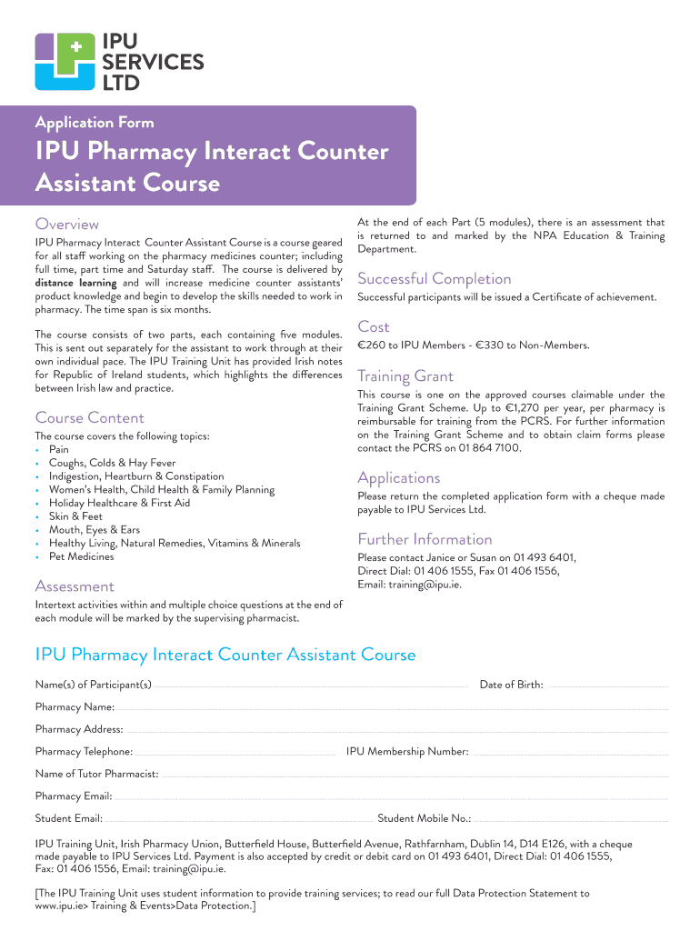 Get the free IPU Pharmacy Interact Counter Assistant Course Form.indd