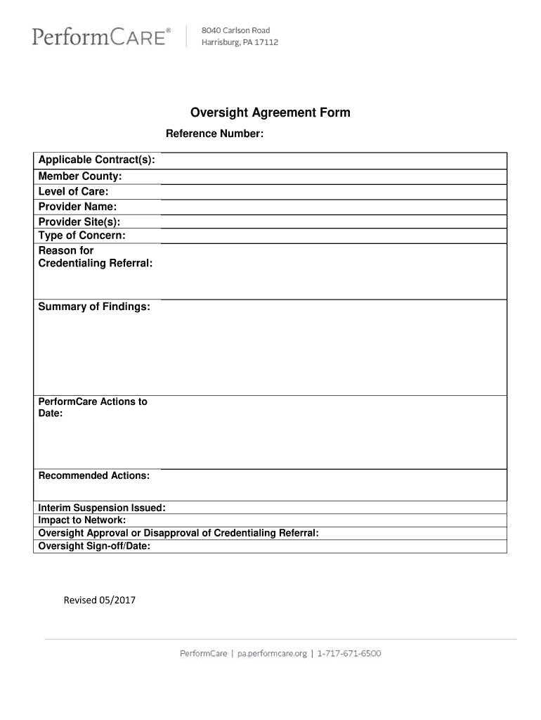 Get the free Oversight Agreement Form - Providers - PerformCare. Oversight Agreement Form