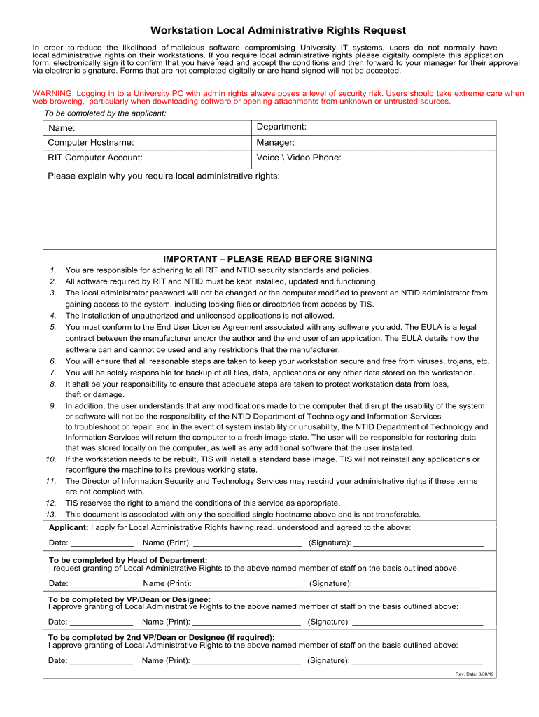 Workstation Local Administrative Rights Request