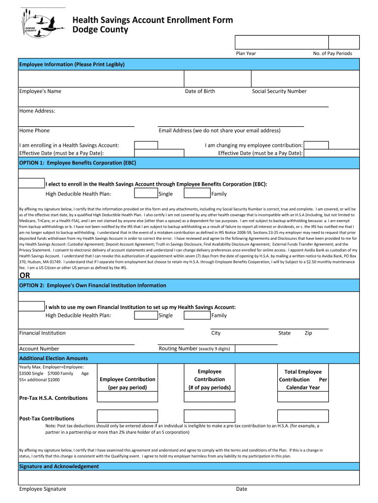 Get the free Health Savings Account Enrollment Form Dodge County