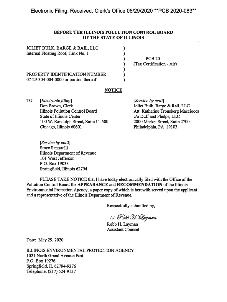 Get the free Electronic Filing: Received, Clerk's Office 05/29/2020 **PCB 2020-083**