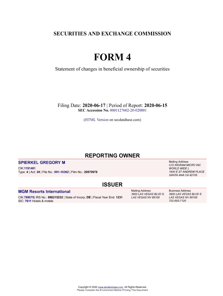 Get the free SPIERKEL GREGORY M Form 4 Filed 2020-06-17. Accession Number